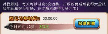 玩家可以召唤三次,召唤出来的凶兽也是各不相同的,玩家在挑战一次后有着十分钟的冷却时间,而每一只凶兽停留的时间都是有限的,大家可要抓紧了。