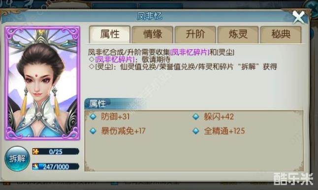 凤非忆合成/升阶需要收集凤非忆碎片和灵尘
