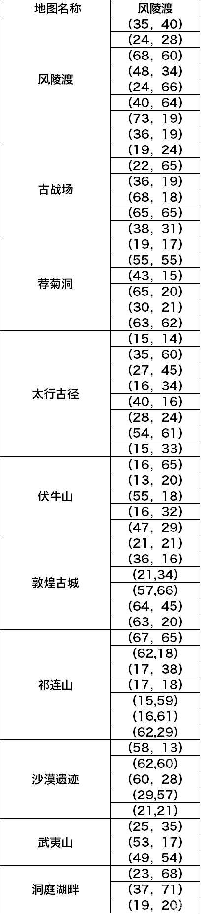 站位并不是简简单单的随便选个位置就行,不仅仅要考虑普通怪的位置与分布情况,还要预判精英怪出现的地点以及时间。在野怪点挂机时,最好能碰到一个拥有篝火的地方,只有这里才是升级的天堂,并且篝火越多越是疯狂得经验到爽。然而找一个这样的地方是很不容易的,下面为大家展示一些出火比较容易怪比较多的坐标收集图。