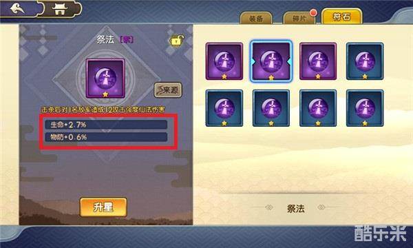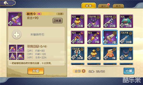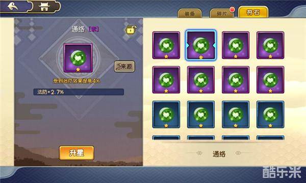 每个仙人能装备4个部位的装备,而每个装备只能镶嵌一个符石,但可以重复的。比如我们可以给奶妈的装备全镶嵌“通络”这符石(提升4%治疗效果),4个部位的话就是提升16%的治疗效果,是非常实用的。