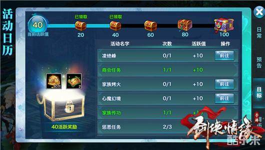 最后编辑于7年前除却主线任务外,《剑侠情缘手游》设有多类副本和活动。通过参加这些副本和活动,少侠不仅可以获得多种奖励,还能获取大量经验,从而快速提升等级。