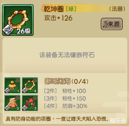 套装效果全是加防御属性的,毫无疑问是给肉装备,不过前期玩家可能会误以为哪吒就是肉,其实哪吒作为肉的能力一般,这个在游戏中期就会逐渐体现出来。这套装备虽然以哪吒命名,但实际上给刑天、赢勾这类大肉角色用会更好。