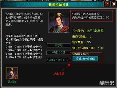这时有玩家会担心,那万一失败了怎么办,是不是统率就掉回0.8了?不用担心,提升将领统率是以每0.05作为一个保值范围的(图4右上角提示),例如你是1.12的统帅,提升失败之后也只会掉回1.10,以此类推。