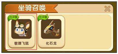 第一步,先召唤出家园中中用碎片兑换的坐骑(电脑版按快捷键“H”),比如先召唤一只小飞鼠。