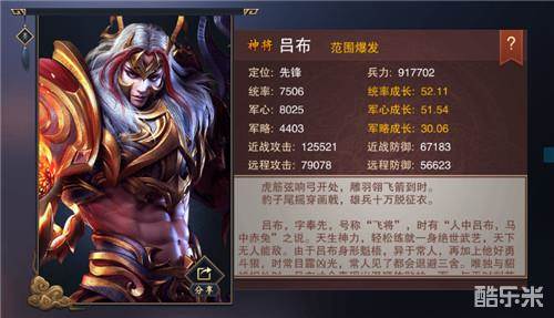 谈起三国中的武将,吕布是当之无愧的No.1,在《血染征袍》的游戏中,吕布的实力仍然深不可测,即使是和其他神将相比,吕布也名列前茅。在基础属性上,吕布是全方位无短板的全能型武将,必杀技天下无双更是超大范围的AOE技能,能够对周围所有敌方打击3次,造成巨额近战伤害,并且还会提升自己的移速与持续伤害。如此全面,实在是令人胆寒。