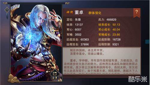 董卓作为吕布的义父,二者因为貂蝉的美色而最终反目成仇,最终互相残杀。在《血染征袍》中,董卓被赋予了一头邪魅的白色长发,也昭示着他凶恶的本来面目。必杀技纵祸能够对单体目标造成320%的近战伤害,几乎可以在瞬间秒杀掉对方一个武将,并且他还能立即回复造成伤害80%的兵力,这一技能的特质,注定了董卓就是整个游戏中持续作战能力最强的武将,他不依赖任何辅助,每次回复兵力,都能让敌方感到绝望。