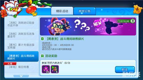 4月20日-4月26日,凡是参与进行巴巴六的对决的玩家都将能够获得奖励!没有英雄限制,不问宠物选择,更不要求取得胜利,只要选择进入巴巴六的对决,即可获得奖励,同时完成对应次数可以领取对应奖励。