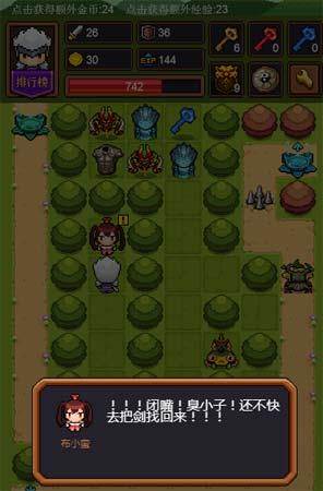 然后消灭边上一竖行的怪这个布小蛮就撒泼让我们给她找剑,那就找吧,友情提示一下。后面只开门的怪必须30攻击以上,所以我们攻击太低啦,是不行的~