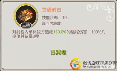 1、贯通射击(主动技能):对射程内的地方造成百分比的远程伤害,100%几率眩晕3秒。