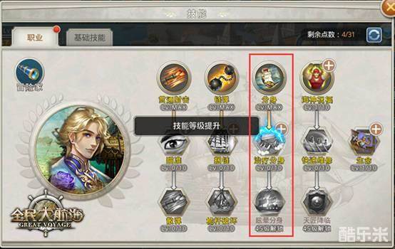通过点击主界面的【技能】图标弹出人物技能界面,主技能(玩家进战斗显示的4个主动技能)需点满级才会触发下一个被动技能,被动技能点满级在解锁新被动技能的同时,还会激活原被动更强的效果。以图中冒险家为例:“分身”主技能点满后激活了“治疗分身”,当“治疗分身”点满级后,分身具有治疗效果。同时解锁“眩晕分身”,而当眩晕分身点满级后,分身就具有施放贯通射击的眩晕效果。也就是分身同时拥有治疗、眩晕技能,十分强大。