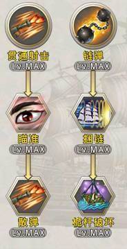 控制流:“贯通射击”的散弹点满,可以额外攻击另一个目标,也就是一次可以晕2个目标,“链弹”的“桅杆破坏”又是可以范围晕眩,敌人可能就一直处于被晕眩的过程中就被击杀,毫无还手之力。