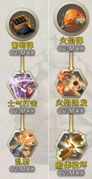 降防流:葡萄弹点出“士气打击”可减少敌方40%防御,配合“乱射”可同时降低2个目标的防御,葡萄弹当第1发子弹打到敌人时就已经降防,也就是后续的子弹打上去是可以享受降防带来的收益。火焰弹的”船体破坏”也可带来降防效果,配合上先用“葡萄弹”点选脆皮,再用火焰弹向敌群最中心目标施放,敌方脆皮就在挂着降防的效果下被火焰灼烧,而海军可以逃离战场靠射程优势放风筝,等技能冷却结束再打一轮。在降防流的海军面前,敌方的坦克不再屹立不倒。