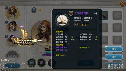 建造船舶需要花费20000金币,建造按钮上方可以看到建造蓝色、紫色品质船舶的几率。新手阶段玩家建造船舶可以根据自己获得的舰队成员来选择,如果你建造出来的船舶没有符合要求的舰队成员就无法作战,会造成资源浪费的情况,建造界面中可以看到自己当前舰队成员类型的情况。