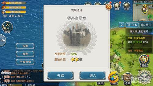 当玩家到达遗迹后即可点击进入,遗迹不仅可以完成每日任务,在路过遗迹时点击还可以直接进行食物补给。遗迹探索开启不需要领取任务,所以当玩家在每日跑远洋贸易的时路过即可进入完成,这样就不需要浪费时间来专门完成遗迹探索了。