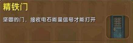 迷你世界中的精铁门,需要配合电石能量信号才能打开,也就是说需要触碰按钮才能打开铁门。