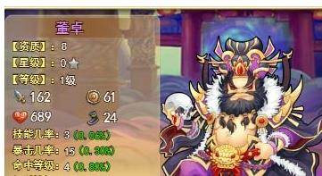 董卓的属性也就是一般般,毕竟这个角色可能不太受欢迎吧。例会的大肚子大胡子和红眼睛。真的挺丑的。