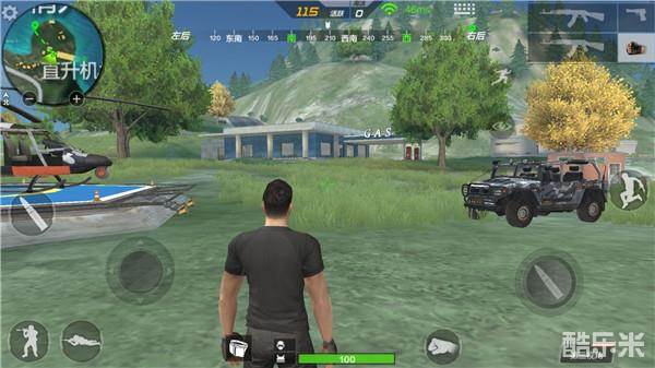 首先在降落的时候,如果我们能够直接降落到这片区域最好直接降落到如图1所示的地方,在图中我们可以看到,这里不仅有越野吉普车,而且这里的还停放有一架直升机。如果落地后我们发现周围还有敌人,一时无法消灭他们的时候,就可以驾驶这些载具先离开这里,寻找下一个发育地点,这样我们就占据了主动权,能够十分灵活的改变战术。