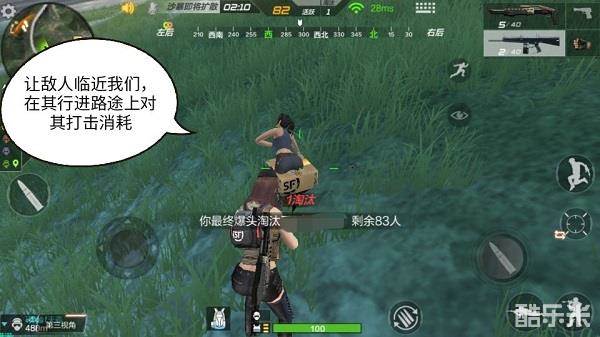 在向着安全区行走时最好选用近身武器,发现敌人后应立刻寻找障碍物,因为霰弹枪需要一定的距离才可以打击到敌人,因此我们可以趁敌人接近我们的途中对其进行打击。