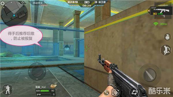 1、实战技巧:由于水族馆的透明度,战士可很好的观察前方敌人的动静,从而随时选择闪身并发动攻击。不过,为了降低发生意外的概率,这里推荐小伙伴依靠矮墙不断点射并配以相应的身法(即闪身、攻击、闪身)。如此,可轻松在淘汰敌人的同时保证个体的生存。