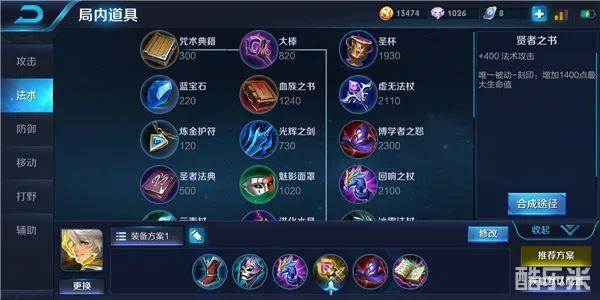 六神装:冷静之靴、痛苦面具、回响之杖、辉月、博学者之怒、贤者之书