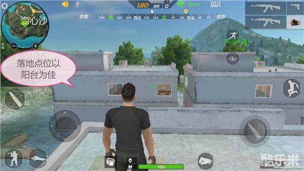 1、落地位置:落地的位置关系到小伙伴初期能否快速发育并占据到先机。这里推荐小伙伴降落在靠近1号钻井的房屋里(推荐阳台位置),原因是此房屋偏远,可轻松避开第一波的倾轧。同时,发育完毕后可在阳台直接查探外围海域的动静,进而收获不俗的战绩。