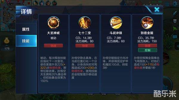 后期装备:破甲弓提供的45%的护甲穿透,使得孙悟空具备了秒杀脆皮的能力,也让他在对战敌方战士或坦克时,可以打出高额的伤害,极大地消耗他们的血量。最后一件选择纯净苍穹,它提供的20%的暴击率,使得孙悟空一共80%的暴击率,大大提升了他的输出伤害,可以轻松的秒杀脆皮,普攻附带60的物伤配合被动后的强化普攻,可以打出爆炸伤害,而主动驱散则可以最大程度的减少他受到的伤害,可以在被控时使用,确保孙悟空的生存能力。