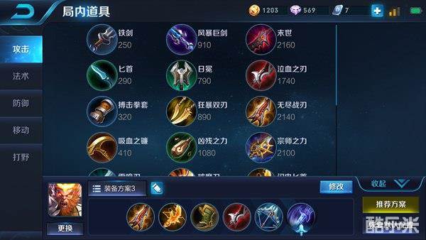 前期装备:第一件选择无尽战刃就是为了在前期尽可能的增加孙悟空的暴击伤害,无尽战刃在增加物攻的同时,所提供的20%的暴击率和50%的暴击效果配合孙悟空的被动,使得他在前期就具有极高的伤害。第二件选择闪电匕首提供的20%的暴击率,使得孙悟空一共具有60%的暴击率,再搭配上他攻速的加成,有极高的概率打出暴击增加伤害,而被动电弧则可以方便他对多个敌人造成伤害。
