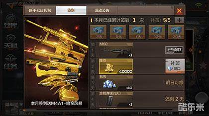 系统还为新老玩家设置了签到功能,按照每月登录游戏并签到的天数可以兑换相应的道具,最高可兑换超稀有的黄金武器。 临时有事无法签到?没关系,我们充分考虑到了这种情况,当天没有签到的玩家可以通过消耗钻石进行补签。