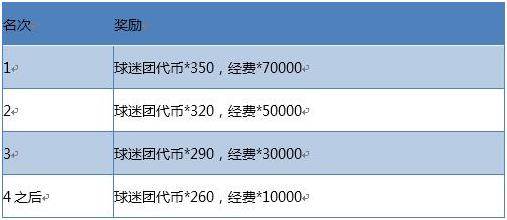 选票第一名的球星阵营内的球迷团所得奖励如下(团内成员所有人所得奖励一样)