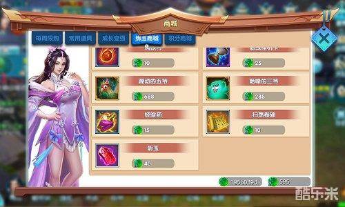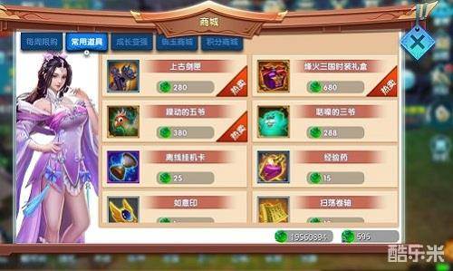 常用道具商城卖的道具全部都是常规提升玩家能力的胜利。售卖的装备范围十分广泛,有提升战斗力的上古剑匣和附魔宝石。有辅助升级的三爷五爷和挂机以及升级药。常规道具是游戏开始阶段最快提升战斗力的商城。