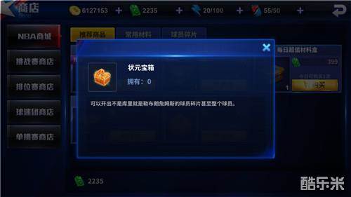 在推荐商店里状元宝箱是获得詹姆斯和库里最快的方法,一个宝箱100点劵里面有2-3个碎片或者整个球员,反正我是没开出过球员。即使是碎片也是极为划算的碎片一个价值50点劵以上。