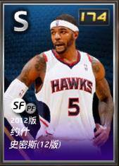 话说12年的约什史密斯可谓是风光无限,进攻防守样样都行,当时的约什和老鹰队也是东部非常惹人的一支劲旅,约什也是联盟各支球队球队垂涎的对象。12版的约什在游戏中,也是非常的强劲,我们可以看到其位置定位为SF/PF,由于约什的身体素质和在游戏中有抓帽的能力,所以说在游戏中胜任4号位相当的轻松,另外约什还有投射能力,作为如今三分球非常重要的今天约什拥有抓帽+投篮的双重能力非常值得推荐。而12版的约什在游戏中能够通过兑换得到,所需精华数为8000(不是一笔小数目啊)。