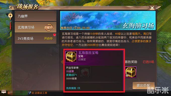 40级后每周六、日指定段可单人或组队报名【玄海演习场】,每日首胜可获得丰厚奖励,每日只可获得首胜奖励,20金票、灵酒(白)、银票5000。