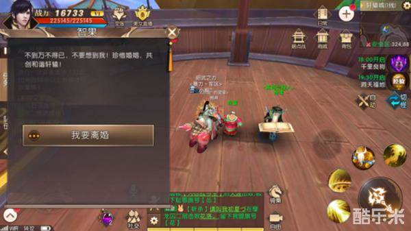 在比武场地媒婆的旁边是离婚受理人,夫妻之间难免会有小摩擦,结婚证书来之不易,珍惜每一段来之不易的婚姻;小编希望所有轩辕的情侣不要来找黄鼻子老头哈!(离婚之后角色界面婚姻状态显示为冥想状态)