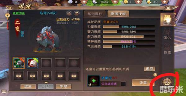 50级我们的宝宝可以进行融合,选择出现灵宠,然后把另一只宝宝融合,可以提升战力,融合战力是根据你另一只宝宝的出战战力而提升,所以我们前期的宝宝不要放生,后期可以融合
