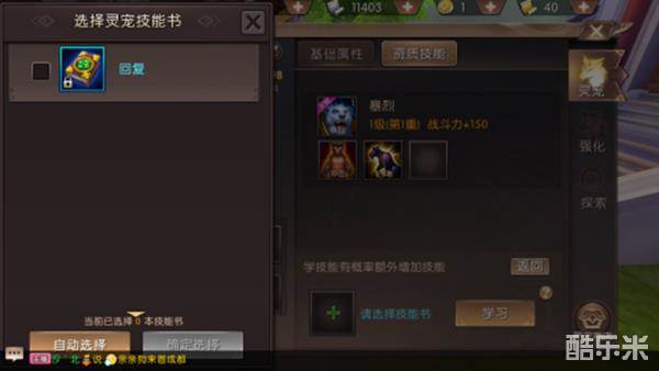 在宠物45级我们就可以对其打书,强化等级影响着宝宝觉醒的品质,技能书强化石我们可以从每日的探索,挖宝级里获取,没强化失败都会增加幸运值帮助你下次强化的成功,打书,强化不要操之过急,可以积攒一定的量然后再强化打书!