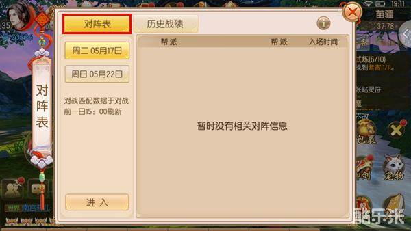 4.如果帮派没有获得参加资格,可能由于该帮派处于匹配列表的最后一名而无法匹配;