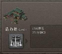 解释一下为什么要先升造办处,因为总共有12个建筑要全升满,而造办处的建筑CD和建筑成本都是比较低的,除了采集场,他可以辅助其他10个建筑,160级造办处大概能节约25%?(待查证,但可以确定可以大于10%),就像魔兽争霸的光环。