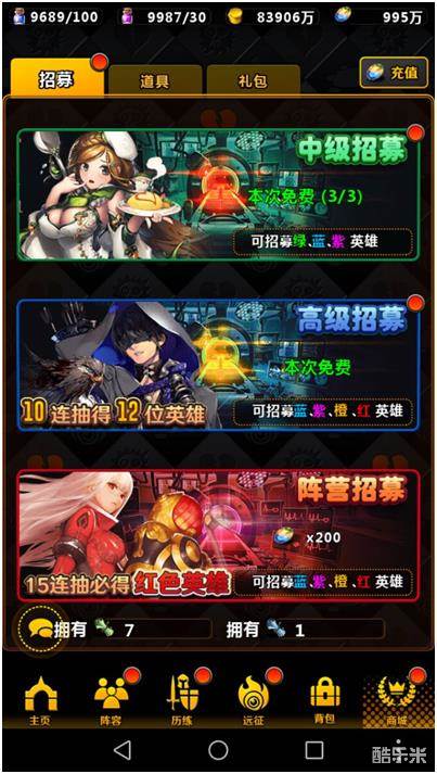 初期红将橙将比较紧缺,很多小伙伴选择阵营15连,小编尝试了一次,15连总费用12350钻,出了1紫2橙1红,红将官价7500,联盟刷折扣碎片6000,橙将2000,可以看出,不怎么划算,如果多出几个橙将,开局时倒也说得过去,但还是不建议,毕竟细水长流。实在饥渴可以钻抽10连,小编第一次就出了红将,感觉4-5次要比阵营招募划算很多。如果不想搏,想要保本的,还是推荐阵营抽,毕竟出的都是自己选择的阵营的卡。