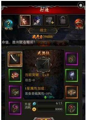 升星:升星和强化一样,也是直接对装备栏的升星,升星就是直接的按照百分比来增加你装备的属性,也就是说,升星的加成,会因为基础数值的增高而增高。