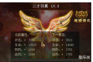 除此之外不得不说的就是这个羽翼系统了,华丽炫酷,加上超强的属性,可以说是众多玩家们的不二之选,有能力的话记得多多培养自己的羽翼。
