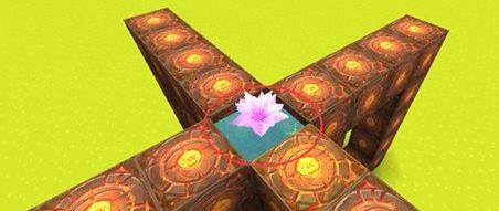 2、在中心一格放入一桶水(岩浆、蜂蜜也可以),在水面上放朵荷花装饰用;