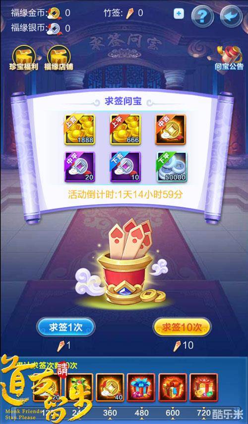 《道友请留步》颠覆西游修仙卡牌手游4月22日至4月24日邀您来求签问宝,求签探吉凶,问宝寻珍珑,有了“求签问宝”福利活动,师父再也不用担心我坚持不住啦!