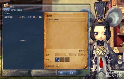 | 只能在物流管理员处发送邮件,16级以下无法使用此功能。 发送邮件时,可以指定收件人,编辑100字以内的内容,并附带金钱和最多3种道具。 |