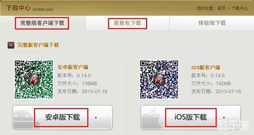 安卓用户和iOS越狱用户下载完整客户端及更新补丁方法: