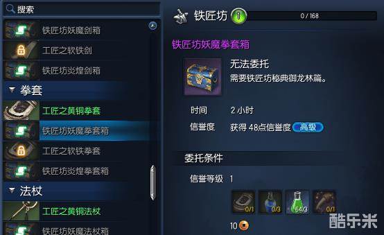 | 加入铁匠坊后,可以委托制作精粹及以上级别的武器。铁匠坊制作得到的武器可以交易,装备或成长后绑定。 | ||||||||||||||||||||||||||||||||