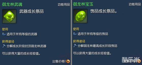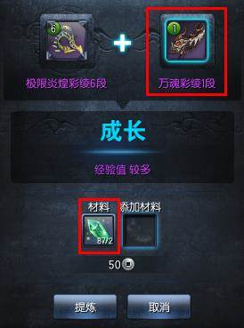 | 除了使用装备作为祭品,还可以使用武魂和宝玉来成长装备。武魂用于武器成长,而宝玉则用于饰品成长。分解成长阶段封顶的武器或者装备会有一定几率获得武魂或宝玉,可以为成长装备提供海量经验。 |