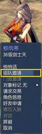 | 当两个玩家面对面时,可以点击对方人物,选择【组队邀请】直接组队。 | ||