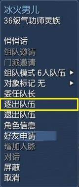 | 队长逐出: 队长可以在队伍界面右键点击要逐出的角色,在弹出的菜单中选择"逐出队伍",将其踢出该队伍 | ||
