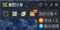 | 可以进行局部截图、全屏截图和连续截图。 可以分享到对应QQ账户的游戏人生或腾讯微博上。 | ||